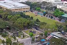 The location of the sports complex lies on the former site of the Engineering Sports Complex that has an open field for softball and football, outdoor basketball courts, a tennis court, a covered basketball court with bleachers, and a canteen.