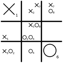 Quantum tic-tac-toe is a "quantum generalization" of tic-tac-toe in which the players' moves are "superpositions" of plays in the classical game. The game was invented by Allan Goff of Novatia Labs, who describes it as "a way of introducing quantum physics without mathematics", and offering "a conceptual foundation for understanding the meaning of quantum mechanics".[1][2][3][4]