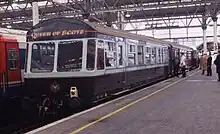 The name Queen of Scots was originally given to an LNER/BR Pullman train which ran from London King's Cross to Glasgow Queen Street via Leeds Central, Harrogate, Newcastle and Edinburgh Waverley. Later the Queen of Scots was a luxury touring train that ran exclusive tours around Scotland's scenic countryside. The train was mostly aimed at American tourists. The train ran from 1985 to 1989 as the Royal Scotsman and in 1990 as The Queen of Scots.