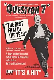 Question 7 is a 1961 American-West German film directed by Stuart Rosenberg and starring Michael Gwynn, Margaret Jahnen and Christian de Bresson. It won the National Board of Review Award for Best Film. It was also entered into the 11th Berlin International Film Festival.[1]