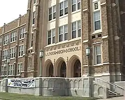 The site for the new school building at 14th between Maine and Jersey was selected in March 1921.[10] The necessity of a new high school intensified through the 1920s, as the school board, Chamber of Commerce, and Rotary Club worked to secure funding and public favor. Chicago architect John D. Chubb was selected to design the building. By 1929, the price for the new building was estimated at $1,300,000, $800,000 over the $500,000 authorized by the board. Construction was delayed to allow time to collect tax revenue.[11]