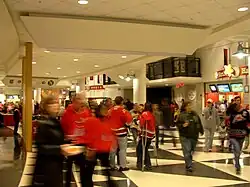 Known as the Raleigh Entertainment and Sports Arena (ESA) from 1999 to 2002, it was renamed the RBC Center after an extended search for a corporate sponsor. RBC Bank, the US division of the Royal Bank of Canada, acquired 20-year naming rights for a reported $80 million. On June 19, 2011, it was announced that PNC Financial Services bought US assets of RBC Bank and acquired the naming rights to the arena pending approval by the regulatory agencies.[9] On December 15, 2011, the Centennial Authority, the landlord of the arena, approved a name change for the facility to PNC Arena.[10] The name change officially took place on March 15, 2012.[11] On a normal hockey day, PNC Arena has more than 400 people on duty for security and concessions.