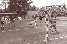 The first handball team in Maribor was formed in 1925, when the women's section of the 1. SSK MB played their first Czech handball match at the Ljudski vrt area.[1] The first men's handball team, named Polet, was formed in 1949.[1][3] They renamed as Branik in 1951, when they participated in the Yugoslav First League qualifiers.[1] In 1954, Branik won their first Slovenian Republic League title, and were promoted to the Yugoslav First League.[1] Between 1955 and 1968, Branik did not achieve any major success and were even relegated to the local Styrian League in 1966, but returned to the top Slovenian division two years later.[1] They were relegated again in 1972, but once again returned in 1979 after spending a few years in the local regional leagues.[1] In 1977, the team merged with Kovinar Tezno to form Maribor.[1] The team was struggling in the next decade and did not achieve any major results. After Slovenia's independence in 1991, the team was reformed with a help from some former handball players, including Marko Šibila, and reached the Third National Handball League (3. DRL).[1]