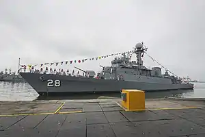 The Pohang class is a series of corvettes built by different Korean shipbuilding companies. The class consists of 24 ships and some after decommissioning were sold or given to other countries. There are five different types of designs in the class from Flight II to Flight VI.[1]