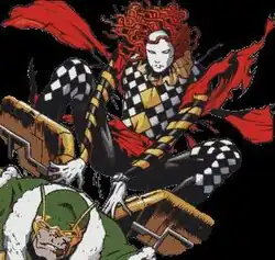 The Six, with new members Jeannette and Bane, are hired to retrieve a card that supposedly gets its owner out of Hell "free". They are attacked by many supervillains who want the card, most acting under orders from Junior, a mysterious mob boss who controls the West Coast. In a confrontation, it is revealed that Junior is actually Rag Doll's sister Alex, who (after implied sexual abuse from their father) mutilated herself horrifically to "bring the ugly out where I can look at it".[6]