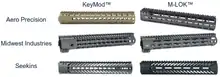 - KeyMod: open source "negative space" (hollow slot) design introduced by VLTOR to replace the Picatinny rail for mounting accessories (except for scope mounts).