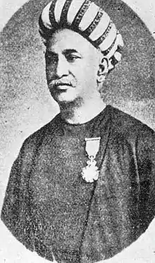 The Mitra family traced its origins to ancient Bengal;[4] and Rajendralal further claimed descent from the sage Vishvamitra of Adisura myth.[7] The family were members of the Kulin Kayastha caste[4] and were devout Vaishnavs.[8] Rajendralal's 4th great-grandfather Ramchandra was a Dewan of the Nawabs of Murshidabad[4] and Rajendralal's great-grandfather Pitambar Mitra held important positions at the Royal Court of Ajodhya and Delhi.[3][9] Janmajeya was a noted oriental scholar, who was revered in Brahmo circles and was probably the first Bengali to learn chemistry; he had also prepared a detailed list of the content of eighteen puranas.[5][10] Raja Digambar Mitra of Jhamapukur was a relative of the family, as well.[10]