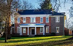 It is a two-and-a-half-story house and claimed to be designed in a transitional style between Federal and Greek Revival architectural styles by late 20th century sources.[2] However, what remains of the original house bares no indication of Greek Revival influences; the house, with a plain brick facade, large pocket doors, and simple interior trim work, is strictly federal in appearance.