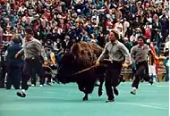 {{cite web}}: CS1 maint: multiple names: authors list (link) - ↑ "CUSportsReport - History of Ralphie". colorado.rivals.com. 2004-10-22. Retrieved 2023-11-06.