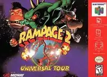 Rampage 2: Universal Tour is a 1999 action game developed by Avalanche Software and published by Midway Home Entertainment. It is the third game in the Rampage series and a sequel to 1997's Rampage World Tour.