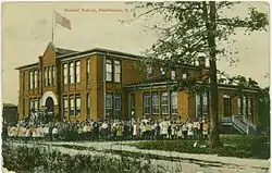 Randleman Graded School, also known as Randleman High School and Shaw Furniture Industries Showroom, is a historic school building located at Randleman, Randolph County, North Carolina. It was built in 1906, and is a two-story brick building, five-bays wide and three bays deep, with a low-hipped roof and flanking hip-roofed two-bay wings added in 1926. The building is Romanesque Revival influenced and features a projecting entrance pavilion with a massive Richardsonian Romanesque-influenced arch. In 1937, an extension to the east wing was added. The building housed a school until 1960, then a furniture showroom until 2000.[2]