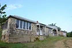 The Ravenden Springs School is a historic school building on Ash and Wells Streets in Ravenden Springs, Arkansas. It is a large single-story fieldstone structure with a hip roof, built in 1941. It has Craftsman styling, notable in its front porch, and grouping of windows on the sides. The building was used as a school until 1974, and went through a number of ownership changes before its reacquisition by the town in 1990.[2]