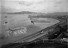 The reclamation of Wellington Harbour started in the 1850s, in order to increase the amount of usable land for the then new City of Wellington. Land plots in the early city were scarce, with little room for public buildings and parks, as well as inadequate dockside areas for shipping. Reclamation progressively advanced into the harbour throughout the 19th and 20th centuries, providing room for public, commercial and industrial areas for the city. Large reclamations were made in the 1960s and '70s to meet the demands of container shipping and new cargo handling methods.[1]