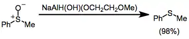 Sulfoxides are reduced to the corresponding sulfides in good yield in the presence of SMEAH.[29]