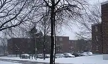 Although Regent Park had been designed to alleviate the area's substandard housing, crime, and social problems, these issues soon reemerged. By the mid-1960s, for example, there were complaints about the housing projects falling into a state of disrepair. Changes to the Canadian immigration system in the 1960s led to an influx of multicultural and multiethnic immigrants into the country. Some of these people, including immigrants from the Caribbean, China and Southeast Asia, settled in Regent Park in the 1960s and 1970s, changing the ethnic and racial composition of the neighbourhood. Meanwhile, the area continued to have a reputation of crime. In the early 2000s, a new redevelopment plan for Regent Park was implemented. The plan in question called for Regent Park to be redeveloped as a mixed-income neighbourhood. Because of the area's proximity to the downtown core, it is potentially high value real estate. The neighbourhood's ethnic composition has changed between 2001 and 2016. In 2001, the neighbourhood was 22% Black, 21.8% South Asian, 19.5% European, 14.1% Chinese, 10.6% Southeast Asian and 3.4% Latin American.[3] By the 2016 census, Europeans had become the largest group, while the presence of visible minority groups declined. The neighbourhood in 2016 was 28% European, 25.7% South Asian, 13.6% Black, 12.5% Chinese and 3.7% Southeast Asian.[4] In Regent Park, the median household income in 2016 was $42,369, although there was a decrease in this income range as compared to 2011. This is lower than the median household income for Toronto at $65,829. As well, the Regent Park neighbourhood has a higher percentage of households without income (5.9%) compared to the City of Toronto average (4.7%) and 44.4% of households are at or below the poverty level, compared to 20.2% for the city average.[5]