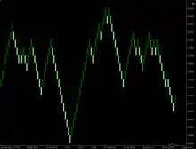 A Renko chart[1] (Japanese: 練行足, romanized: renkōashi, also written 練り足 neriashi) is a type of financial chart of Japanese origin used in technical analysis that measures and plots price changes. A renko chart consists of bricks (煉瓦, renga), which proponents say more clearly show market trends and increase the signal-to-noise ratio compared to typical candlestick charts.[2]