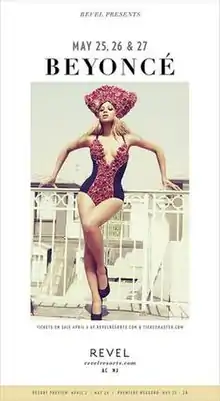 - ↑ "Beyonce Returns to the Live Stage for Revel Premiere on Memorial Day Weekend" (Press release). PR Newswire via American City Business Journals. March 19, 2012.