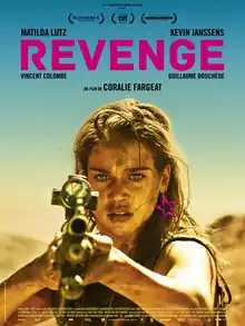 Revenge is a 2017 French revenge action thriller film written and directed by Coralie Fargeat, and starring Matilda Lutz, Kevin Janssens, Vincent Colombe and Guillaume Bouchède. The plot follows a young woman who is raped and assaulted and left for dead in the desert by three men, where she recovers and seeks vengeance upon her attackers.