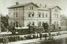 The station was opened under the name of Odenkirchen in February 1870 at line kilometre 6.9 on the original line from Mönchengladbach.[5] Between 1905 and 1945 there was a single-track connection to Rheydt freight yard. In 1908, a parallel route was built to Rheydt Hauptbahnhof, which is now part of the Cologne–Mönchengladbach railway. On 1 August 1929, Odenkirchen was merged with Rheydt, München-Gladbach, Giesenkirchen and Schelsen to form the new city of Gladbach-Rheydt. This city was dissolved again in 1933, but Odenkirchen, Giesenkirchen and Schelsen stayed with Rheydt and the station was renamed Rheydt-Odenkirchen in 1962.[5] This name was not changed with the reincorporation of Rheydt into Mönchengladbach (its new name) on 1 January 1975.