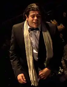 Rodriguez came to the aid of the Spanish announce team at TLC: Tables, Ladders & Chairs on December 16, who were being heckled by 3MB (Drew McIntyre, Heath Slater, and Jinder Mahal). As 3MB turned on Rodriguez, Del Rio came to his aid, signalling a face turn for the duo.[43] The turn was further cemented the next night at Raw in a similar situation as Rodriguez came to the aid of Tommy Dreamer, who was being assaulted by The Shield, but Rodriguez ended up being attacked himself.[44] On the December 28 SmackDown, Rodriguez was randomly selected to be the next contender for Big Show's World Heavyweight Championship, but Show knocked him out backstage, starting a feud between Del Rio and Show.[45] Rodriguez received his title match against Show on the December 31 Raw; as Rodriguez was about to lose, Del Rio interfered and attacked Show, causing Rodriguez to lose via disqualification.[46] After Del Rio defeated Show to win the World Heavyweight Championship in January 2013,[47] Rodriguez started bringing a bucket to the ring.[48] During Del Rio's title defense against Show at the Royal Rumble, Rodriguez duct-taped Show's legs to the ring ropes to ensure that Del Rio won the Last Man Standing match; the next week, Show attacked Rodriguez twice.[49][50] During Del Rio's next feud with Jack Swagger, Rodriguez suffered a storyline broken ankle due to Swagger's attack.[51] On the edition of April 29 of Raw, Rodriguez defeated Zeb Colter and Big E Langston in a triple-threat match, giving Del Rio the right to choose the stipulation for his World Heavyweight Championship match at Extreme Rules.[52]
