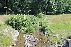 The elevation near the mouth of Rickard Hollow is 636 feet (194 m) above sea level.[3] The elevation of the stream's source is between 1,000 feet (300 m) and 1,020 feet (310 m) above sea level.[1] The stream is close to the Greenwood Valley and to another valley known as Davis Hollow.[4]