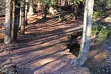 The earliest settlers in what became the park were two squatters who built sawmills to make bed frames from cherry trees they cut for lumber. One squatter, Jesse Dodson, cut trees from around 1830 to 1860 and built a mill and the dam for what became Lake Rose in 1842. Dodson also built a dam south of Mud Pond, near what became Lake Jean; both dams were on the Ganoga Glen branch of Kitchen Creek, and each was used to make a "log splash pond".[21][22] The other squatter, named Sickler, also built a mill and log dam, at what became Lake Leigh on the Glen Leigh branch of Kitchen Creek. Sickler was active from 1838 to about 1860.[19][21]