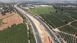 In 2005, works began on the construction of Route 431, a limited-access freeway connecting Rishon LeZion with Modi'in.[5] Traffic lanes were built on either side of both the Be'er Ya'akov–Rishon LeZion and Anava–Modi'in railways, incorporating the existing rail tracks into the new highway median, in a manner similar to Ayalon freeway-railway in central Tel Aviv. The highway was additionally designed to accommodate a dual-track railroad in its median for much of its length, guaranteeing right-of-way to extend and connect these two sections and thus creating the potential for a new contiguous Rishon LeZion–Modi'in corridor.
