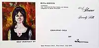 In 1971, Rita opened her own art gallery, Galerie Camille, on Canon Drive in Beverly Hills. Besides selling her paintings, she was commissioned portraits of Tricia Nixon, Otis Chandler, and others.[1][3][10]