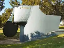 After decommissioning, Parramatta and Swan were stripped down and sold to the NSW Penal Department for use as prisoner accommodation on the Hawkesbury River.[15] The two hulks were then sold into private hands; after plans to use them as fishers' accommodation, they were used to transport metal to islands along the river.[15] In 1934, Swan and Parramatta were being towed along the river to the ship breakers when heavy weather caused the hulks to break free of their towing vessel; Swan sank, and Parramatta ran aground.[15] The two ships were abandoned, although in 1973, the bow and stern of Parramatta were salvaged for use as memorials.[16]