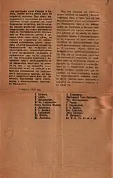 On 9 March 1919, while in Sofia, he signed the "Appeal to the Macedonian population and to the émigré population in Bulgaria", issued by the Provisional representation of the former United Internal Revolutionary Organization.[18]