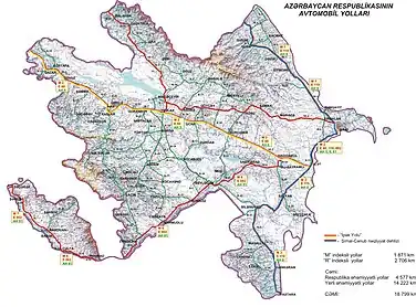 2. 1 2 3 "Azərbaycan Respublikasının respublika əhəmiyyətli avtomobil yollarının siyahısının təsdiq edilməsi haqqında" [On approval of the list of roads of republican significance of the Republic of Azerbaijan] (in Azerbaijani). (Archive)