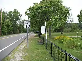 Local historic sign facing southbound Suffolk CR 21 traffic.