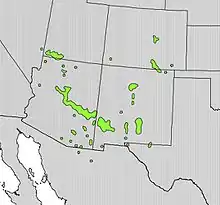Robinia neomexicana is native to the Southwestern United States (southeastern California and southwestern Utah, Virgin River region,[2] east through Arizona and New Mexico, the Rio Grande valley, to far west Texas) and adjoining northern Mexico; from central New Mexico the range extends north into Colorado, mostly the eastern foothills of the Rocky Mountains. In Arizona, it ranges across the Arizona transition zone, the Mogollon Rim and White Mountains, and into western and southwestern New Mexico.[2]