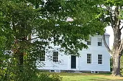 The main block of the house is a 2+1⁄2-story wood-frame structure, five bays wide, with a side gable roof and four side chimneys in the brick end walls. The main entrance, centered on the east-facing facade, is topped by a fanlight window and flanked by pilasters of Doric order, which support a lintel with entablature. There are secondary entrances on the side walls. The rear ell joins the house to a barn. The upstairs of the main block features a distinctive hinged wall, enabling the space to be converted into a sizable ballroom for entertainment.[2]