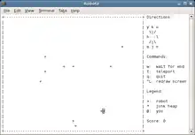 The player attempts to survive by causing the robots to kill themselves by colliding with other objects on the map. There are two major ways this occurs. In earlier versions derived from Chase!, there are a number of deadly objects on the map that will kill either the robots or the player. In later versions derived from robots, the map is initially clear and these hazards are created when two robots collide to create a pile of rubble. In either case, the player is attempting to move in such a way to cause the robots to collide with each other or stationary obstacles.