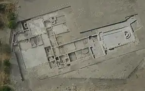 The excavated area is of a residential villa (or pars urbana) but from aerial photography and geophysics, a site located just 1.5 km away in the Sedia d'Orlando area was probably the agricultural part (pars rustica) of the villa. Several buildings including a three-winged porticoed building, a warehouse with dolia, a duct system and a series of furnaces could have been for the storage of products with an adjoining port on the Carapelle river.[9]