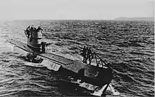The first submarine to be ordered and actually commissioned by the Romanian Navy was Delfinul. She was ordered in 1927 from the Italian naval base and shipyard at Fiume (today Rijeka, Croatia). A second boat of this class was also planned, but not laid down. She was completed in 1931, but was accepted by Romania as the country's first submarine only in 1936, after the many corrections required by the Romanians were completed.[6][7] Delfinul had a surfaced displacement of 650 tons, which grew to 900 tons when submerged. The boat measured 68 meters (223 ft) in length, with a beam of 5.9 meters (19 ft) and a draught of 3.6 meters (12 ft). Her power plant consisted of two Sulzer diesel engines and two electric motors powering two shafts, giving her a top speed of 14 knots (26 km/h; 16 mph) on the surface and 9 knots (17 km/h; 10 mph) submerged. Her crew amounted to 55. She was armed with eight 533 mm (21 in) torpedo tubes (4 bow and 4 stern), one 102 mm (4 in) deck gun and one twin 13 mm (0.51 in) machine gun.[8][9] After the 23 August 1944 coup, the submarine was confiscated by Soviet forces and commissioned as TS-3 on 20 October 1944. After a short career in the Soviet Navy, it was decommissioned on 12 October 1945.[10] The submarine was eventually returned to Romania in 1951 and stricken in 1957.[11]