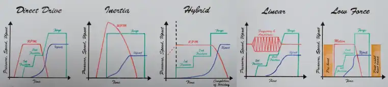 Chart comparison in several friction welding methods.An overview of the charts can be found on the MTI website.[43][44]