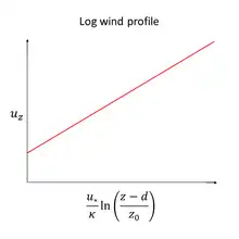 The roughness length appears in the expression for the mean wind speed near the ground derived using the Monin–Obukhov similarity theory:[2]
