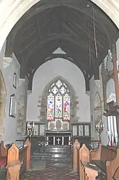 The church building dates from the 12th century. The easternmost bay of the arcade for the south aisle was built in about 1180 and the bell tower was added early in the 13th century.[3] Between 1296 and 1316 a chantry chapel was added to the north side of the nave. Slightly later the south aisle was extended the full length of the nave, a south chapel was included and a south porch was added. The arch to the south chapel is 14th century and all the windows of the south aisle are Decorated Gothic.[3] In the 15th century a clerestory was added to the nave and a rood screen and rood loft were built across the nave and aisle. The chantry chapel was in disrepair by 1520 and demolished shortly after 1530. Later in the 16th century a large window was inserted in the north wall of the nave towards its western end. It and all the other windows in the north wall are Perpendicular Gothic.[3] In 1867–68 the church building was restored, the chancel and south porch were rebuilt and the height of the chancel was increased.[1]