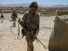 With very little notice the 1st Battalion would deploy again to Helmand Province in late 2009 where soldiers from 1st Battalion saw action guarding checkpoints in the Nad-e-Ali area, in central Helmand province later in the year.[13] Deploying alongside them were elements of the sister 3rd Battalion, who deployed to Afghanistan as part of 11 Light Brigade in October 2009.[14]