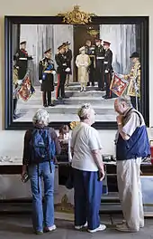 Marlborough Room showing triptych on leather of the Battle of Blenheim by Horensburg RMAS Collection