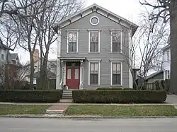 The home was constructed in 1856 by John L. Routt. It is the only home in Bloomington that can be definitively attributed to Routt.[1] The rectangular two-story house was built for lawyer and Bloomington resident Ruben M. Benjamin. Benjamin was a prominent attorney who represented the people in The People vs. Chicago and Alton Railroad as well as helped to develop the famed Granger cases. The railroad case was widely considered a benchmark ruling that allowed the government to regulate private enterprises.[1][3]