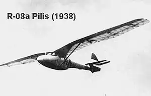 The Rubik R-08 Pilis was a Hungarian single-seat, advanced training glider first flown in 1939. It was very successful; 269 were built in batches, the first starting in 1939 and the last in 1956.