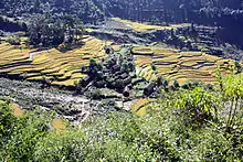 Irrigated rice cultivation around a small village in Rukum, Nepal.