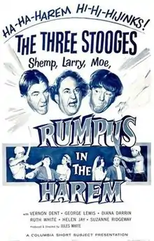 Rumpus in the Harem is a 1956 short subject directed by Jules White starring American slapstick comedy team The Three Stooges (Moe Howard, Larry Fine and Shemp Howard). It is the 171st entry in the series released by Columbia Pictures starring the comedians, who appeared in 190 shorts for the studio between 1934 and 1959.