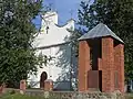 The church is located at the heart of Rundēni - opposite the bus stop, and was built without towers. There is a separately standing small bell-tower with two bells. An iron fencing on the stone basis fences the church and bell-tower. Local landowner Andrey Shahno constructed the church about 1820.[4] Inside the church is a crypt, in which was buried the family of landowner Victor Shahno - descendant of Andrei Shahno. Victor Shahno himself had emigrated abroad during the Second World War. Until 1946 the crypt was available for visitors, but later was closed to prevent looting.