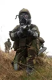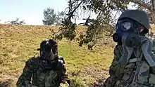 The S10 was introduced in 1986 as a replacement for the S6 NBC Respirator[1] in service from the 1960s, and is manufactured by Avon Rubber.[2] S10s were issued to British nationals in Saudi Arabia during the 1991 Gulf War and were marked by a blue coloured PSM (Primary Speech Module) fitting or a blue painted spot on the forehead.