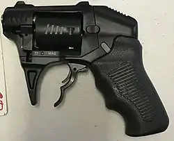 The S333 Thunderstruck is an aluminum-frame revolver designed and manufactured by Standard Manufacturing of New Britain, Connecticut. Introduced in 2019 and intended for concealed carry, is notable for being a volley gun, as each pull of the trigger simultaneously fires two .22 Winchester Magnum Rimfire cartridges.
