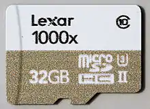 Panasonic MicroP2 cards shipped in March 2013 and were the first UHS-II compliant products on market; initial offer includes a 32 GB SDHC card and a 64 GB SDXC card.[29][32] Later that year, Lexar released the first 256 GB SDXC card, based on 20 nm NAND flash technology.[33]